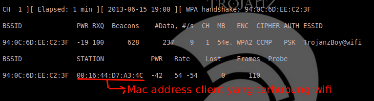 ket : hacking wpa2 tidak memerlukan banyak paket seperti hack wep.Kita hanya mencari handshake nya saja